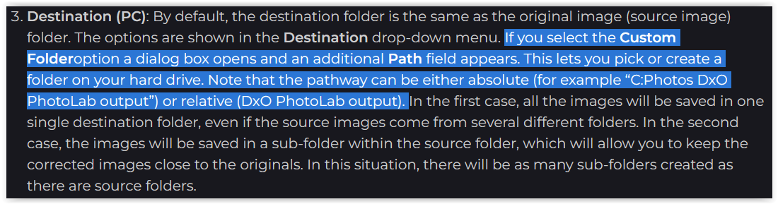 Now in PL 9’s → Export option → Custom Folder one can choose the path from a dialog, but no more enter something manually ( also mentioned by @KeithRJ ).