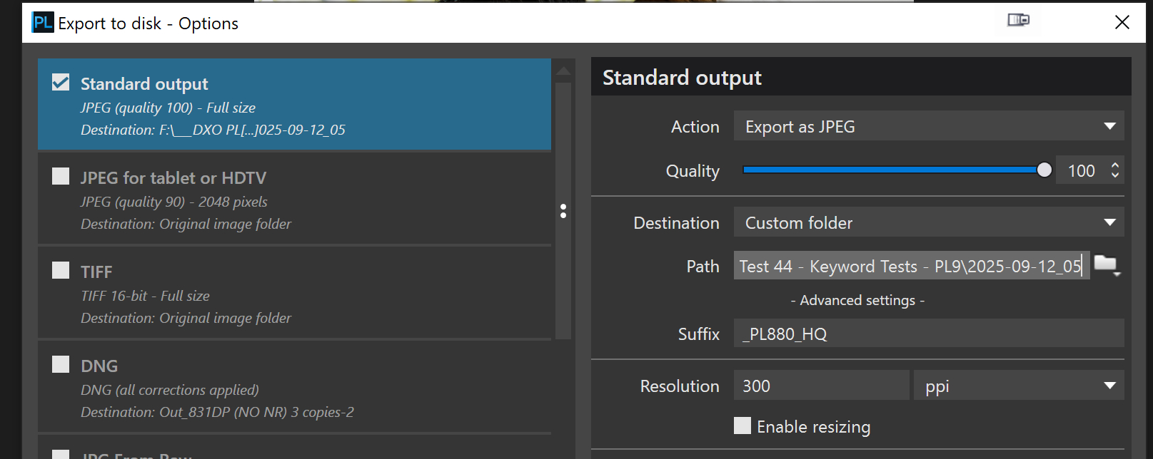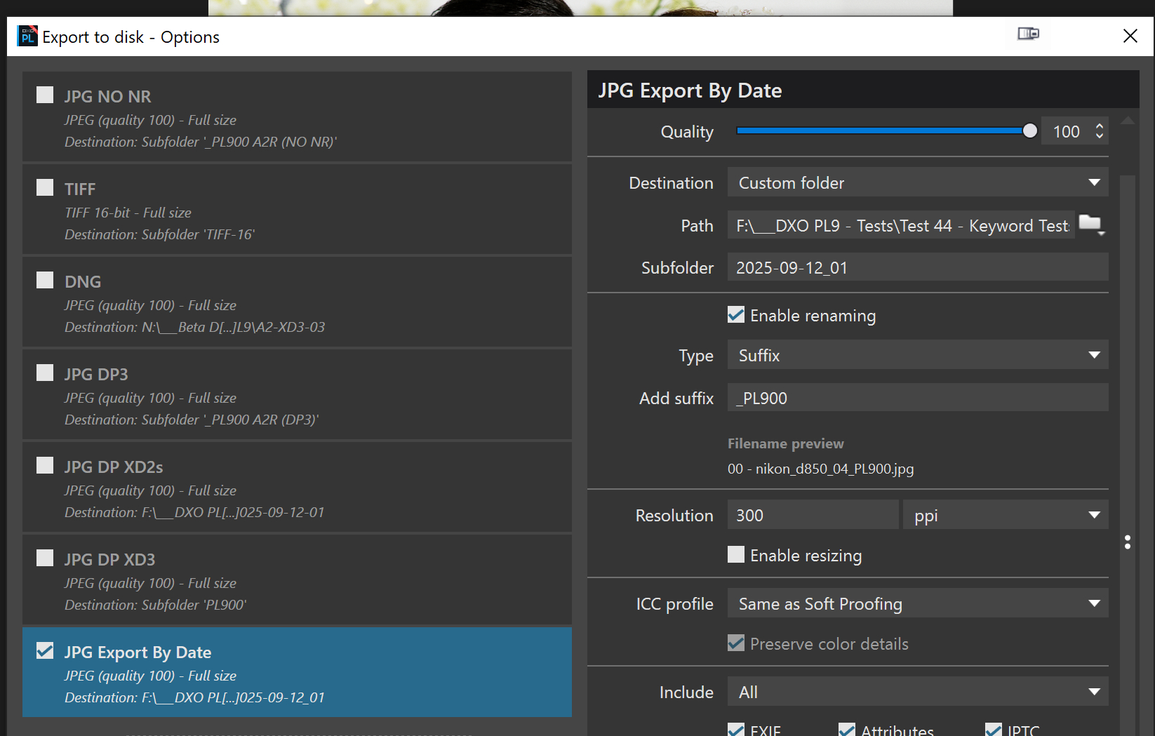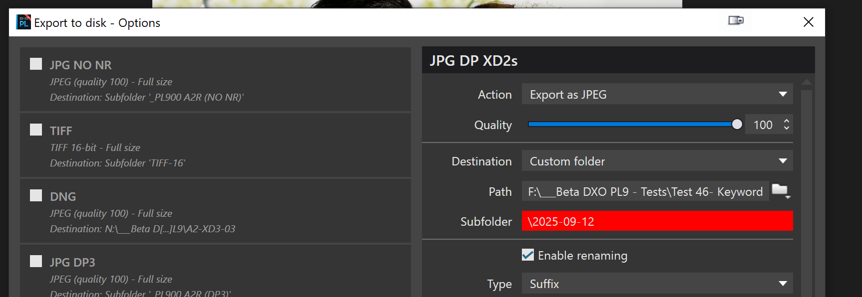 Your screenshot of the revised Export Destination dialogue is different than the online manual! You show 3 fields, “Path” and “Subfolder”, both which appear editable! The online manual only shows 2 fields. The manual’s image shows the editable field as “Subfolder” but the text refers to “Path”. The PL9 manual’s dialogue appears the same as the PL8 manual, so suspect not change was intended. Wonder which is the “correct” field label. Seems like a big “opps” on DxO’s part. My comment was directed to the old “Path” field, by what ever label. Sorry for the confusion.