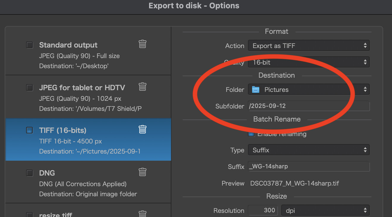 Fortunately, my export process using date-based folders is the same with PL8 and PL9 on the Mac as it was on PL6, PL7, PL8 on Windows. I simply revise the date in the export destination field as usual. I did not experience any changes to PL workflow when switching operating systems while using PL8.