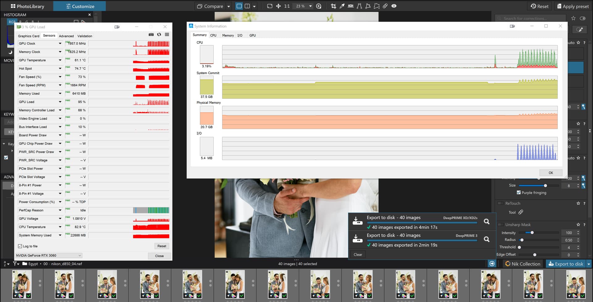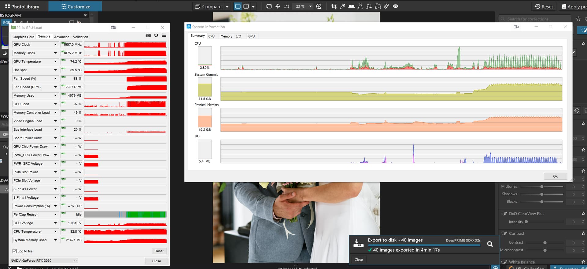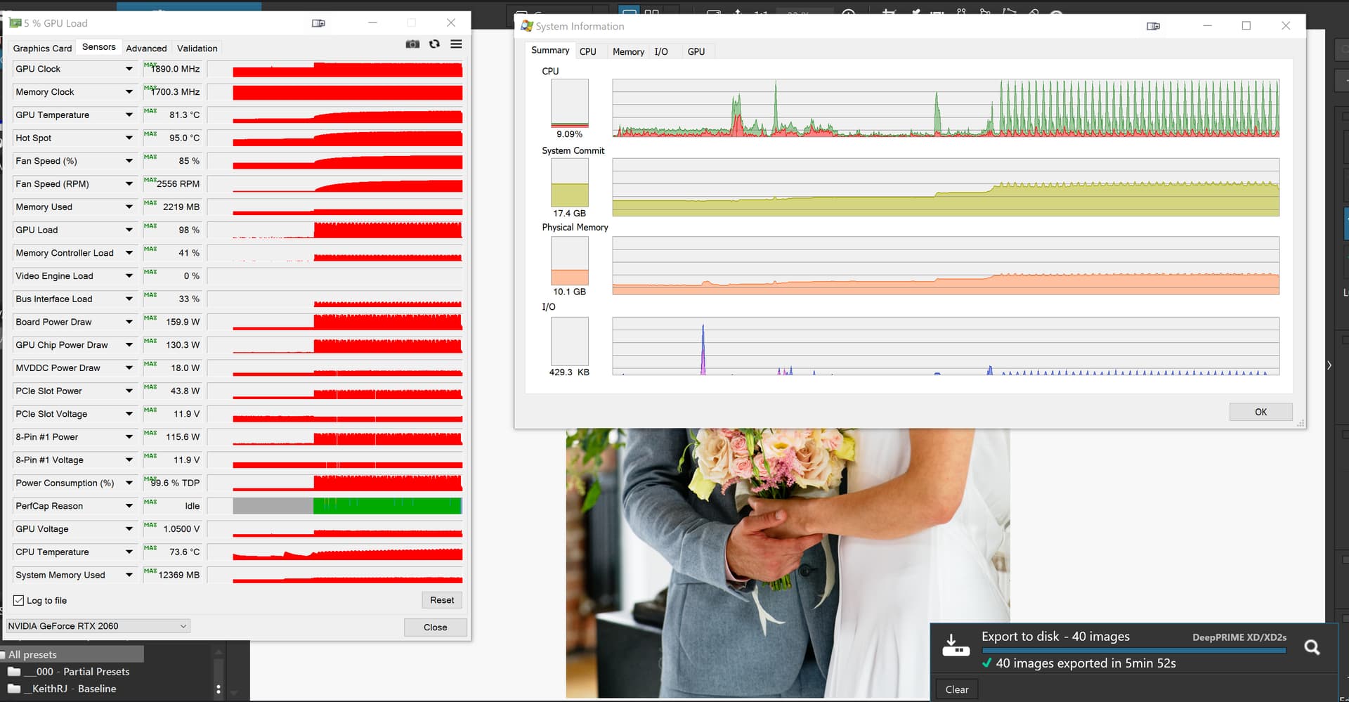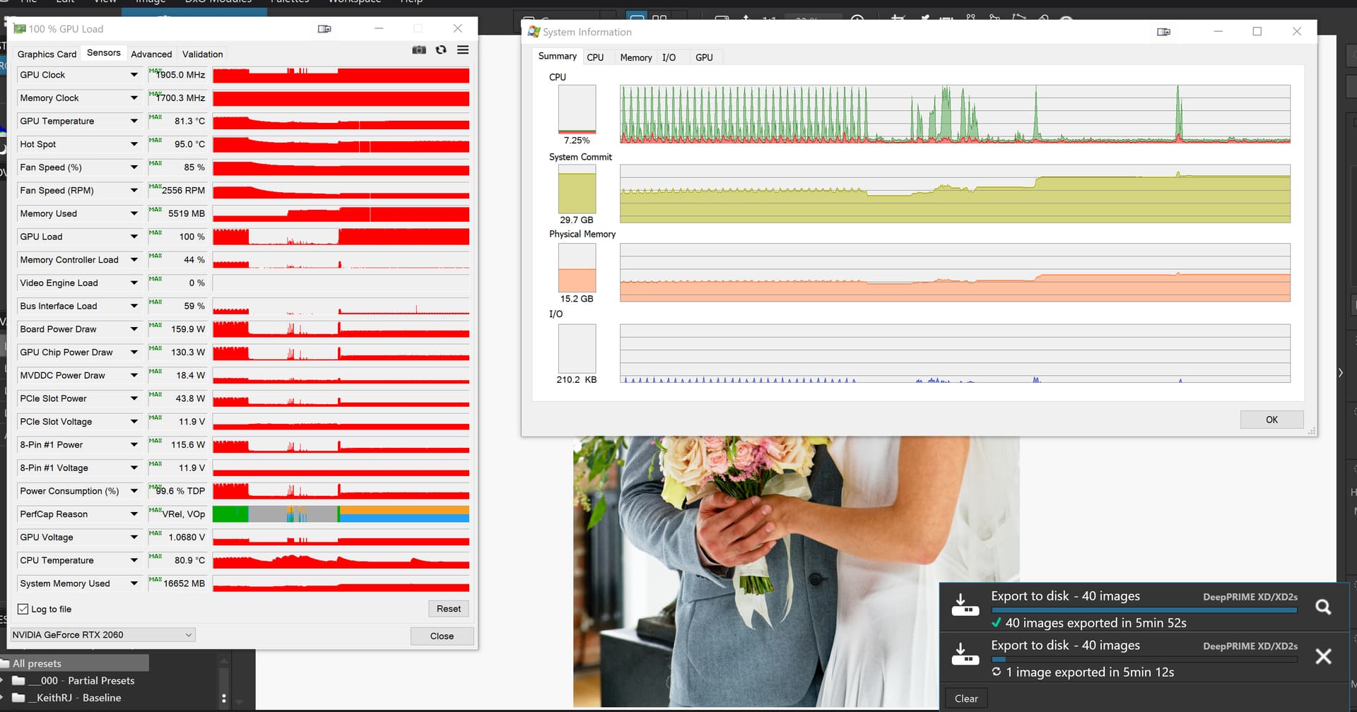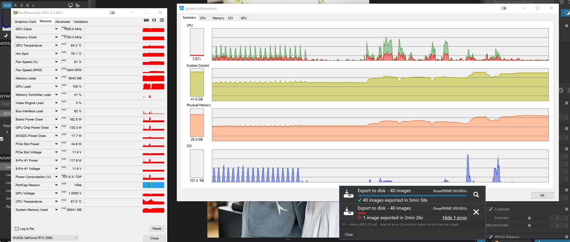 But any attempt to export with a 2060(6GB) and AI set is doomed to failure, i.e. AI and XD2s (and running the monitors) requires too much memory and PL9 either takes forever to export a single image or takes forever to export a single image and does so disgracefully!