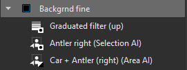 Car + Antler (right) selected with ‘Area AI’ (invert mask), The right side Antler ‘Selection AI’ (invert shape), Graduated filter (Invert shape).