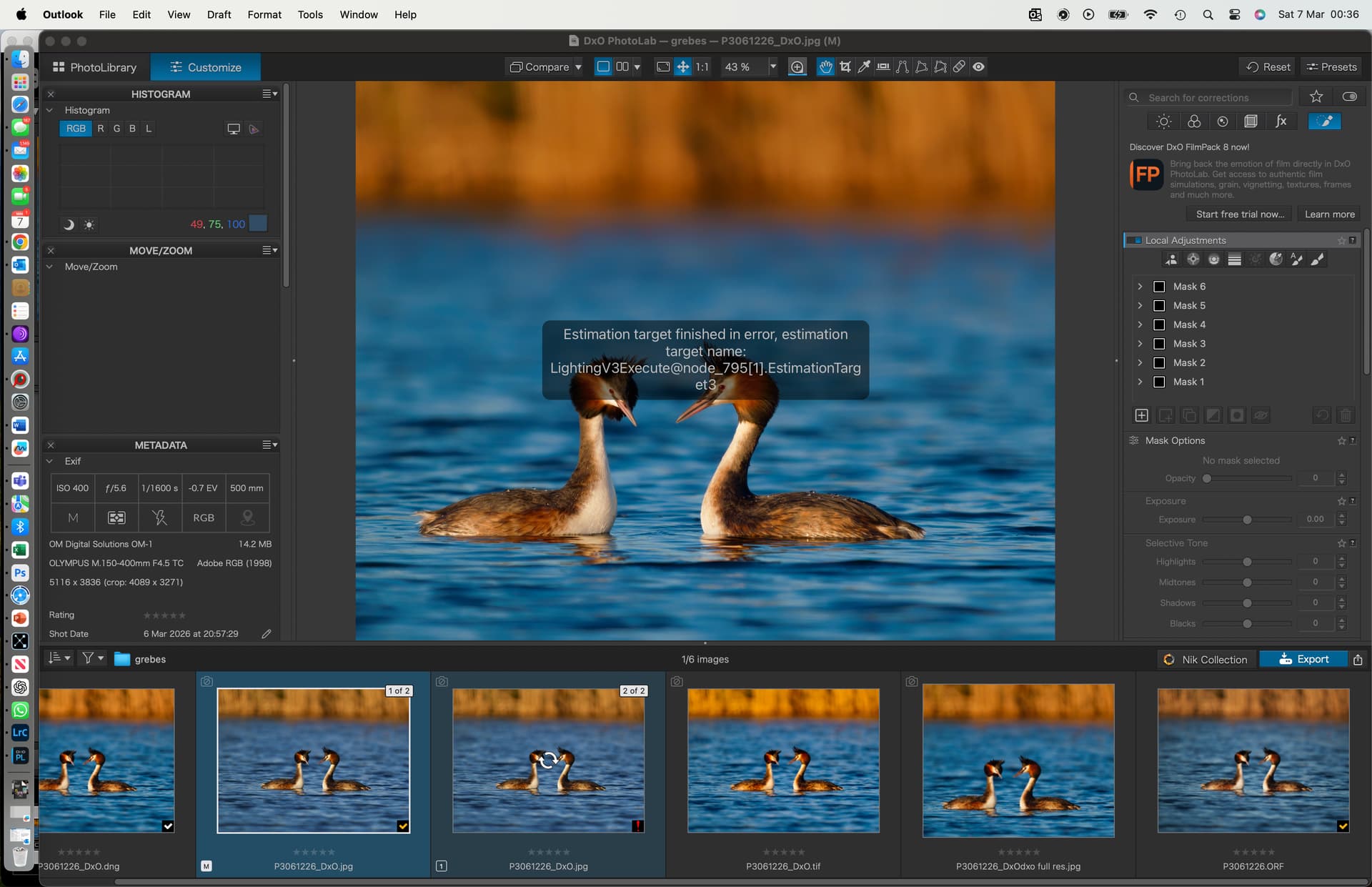 Unfortunately not since my trial has now expired. So I think I am going to have to stick with dxo6 and LR for now. fwiw I could not have shared the raw and dop file for a failed export anyway since the whole thing had failed post export attempt and the only way of recovering would have been to restart from the raw. Thanks for offering though.