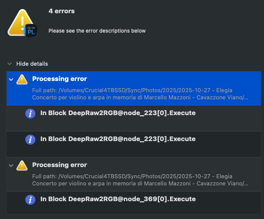 Example of the error window after an export of about 40 images out of which 4 errored: