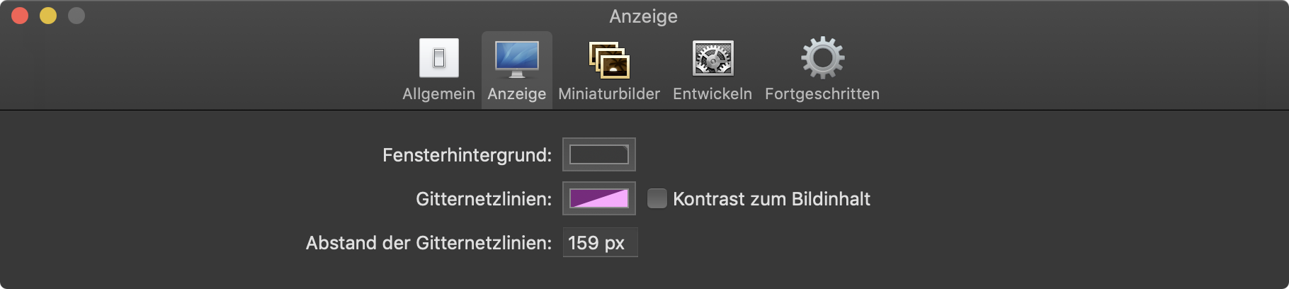 It would be great to be able to change the color of the overlay grid (Ctrl+G in Windows). I use the grid while adjusting Horizon and Perspective. I like that I can adjust the spacing between grid lines. However, the white color of the grid is too hard to see against light backgrounds. It’s a frequent problem for me.