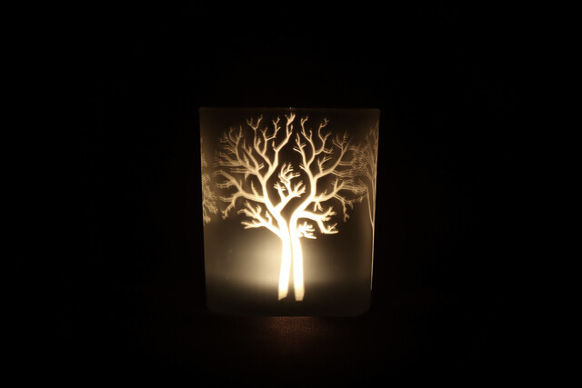 It’s a jam jar sized tea light holder, with a tea light candle inside it, sat on a black cloth background. 5 secs at f16.