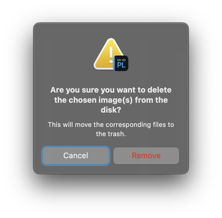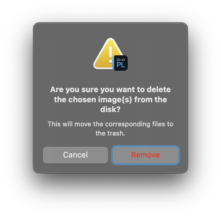 I’m coming from PL7. When I wanted to remove an image, including from the hard drive I used command+delete and hit return to delete. In PL9 when I use command+ delete the remove button on the screen is red and clicking the return key does nothing, I have to use my mouse and tap on the remove button on the dialogue box. Surely I’m doing something wrong because there would be no reason to add this extra complexity to something that already worked logically. In addition when I’m going through a series of images I want to delete one after the other all of a sudden command+ delete no longer brings up the dialogue box and I have to click on the image and from the pop-up menu select remove and then use my mouse to click on the remove button to delete the image. If I quit the app and relaunch it, command+ delete works again until it doesn’t. Has anyone else experienced this? Can anyone steer me to how to fix this? Many thanks.!