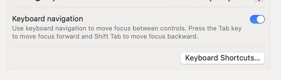 I can’t at the moment, but perhaps I need to check my accessibility settings – I wonder if there’s something that needs to be toggled there in order to have keyboard selection of buttons?