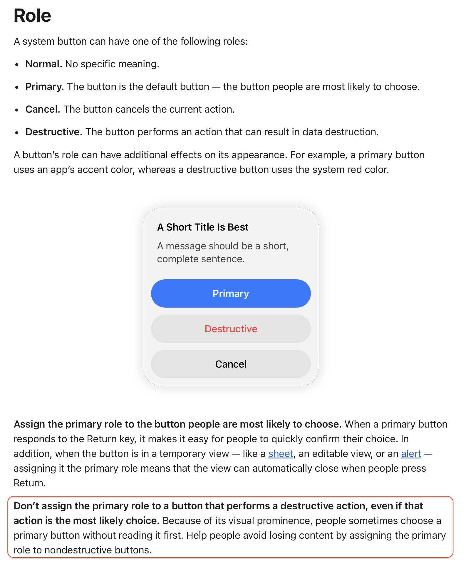 The inactive button in the popup is “Remove”. Note the red lettering consistent with the “destructive” button state described in the guideline.