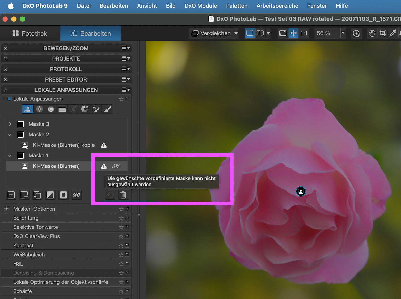 So let’s keep hoping that a fix will come soon. In principle, the predefined masks can also be captured with the other options, but I am particularly concerned about the photos that already use the predefined masks, which, unfortunately, don’t work anymore. Apparently, PL does not “remember” the mask but resets it every time a photo is accessed.