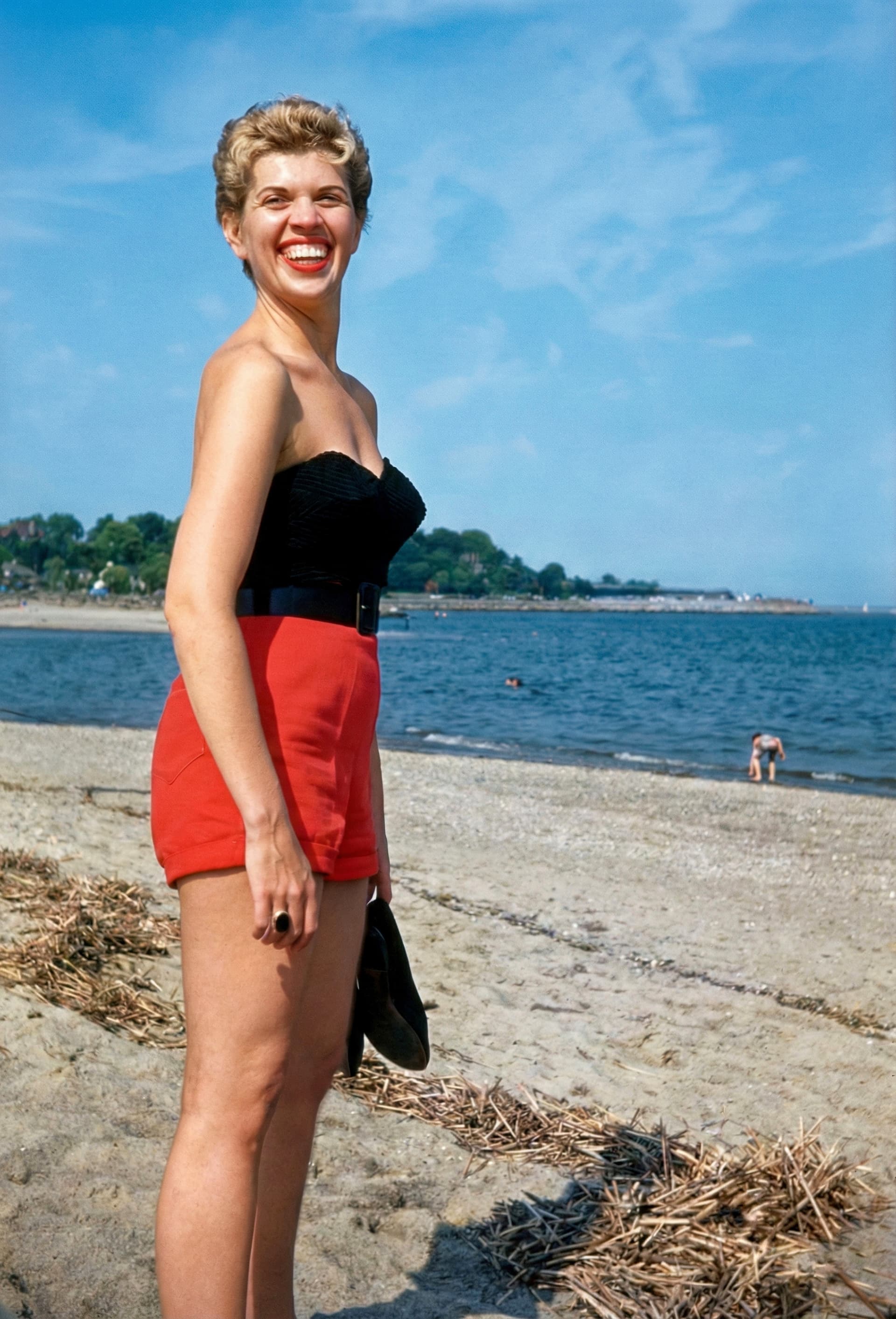 Here’s one of my restorations; it’s of my mother, taken in the late 1950s by my dad and his Argus C3 on Ektachrome. Despite extensive fungal damage I think it turned out well.
