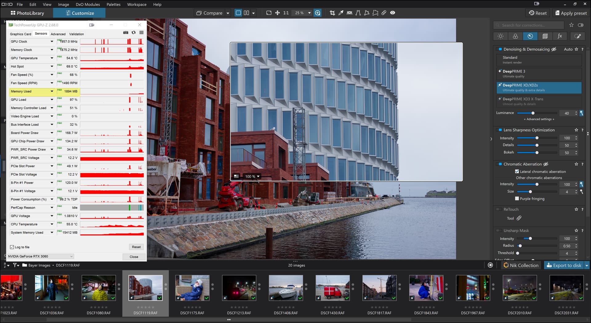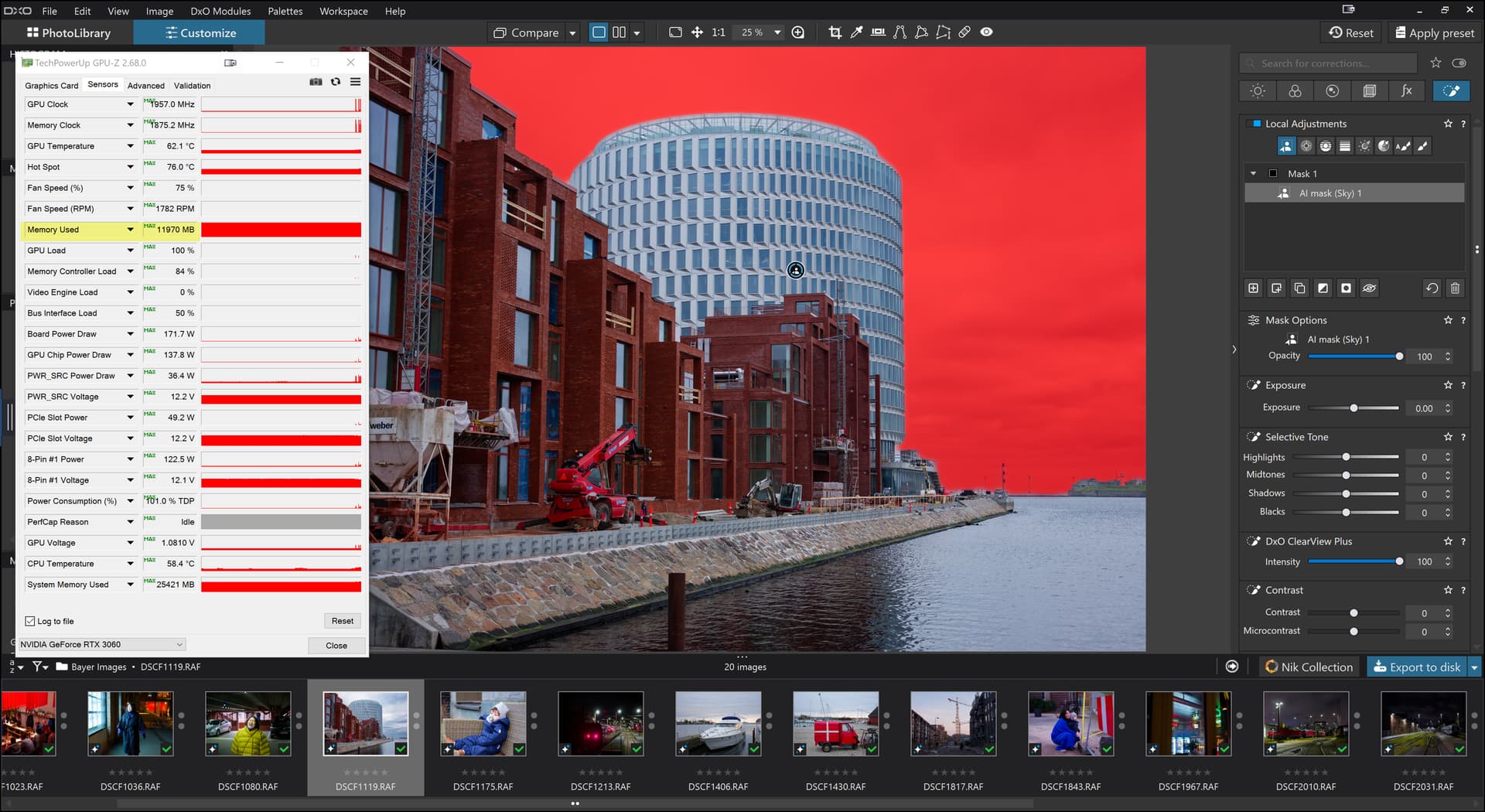 That was ÂŁ30 more than I had paid for the 3060(12GB) at the beginning of 2023 and I decided it was too good to miss and am generally pleased with the purchase, the 5900X is twice the speed of the 5600G and the 5060Ti(16GB) is slightly less that twice the speed of the 3060(12GB) and I am hoping both are big enough to cope with the current PL9 release, now and when âfixedâ and anything else that DxO might add.