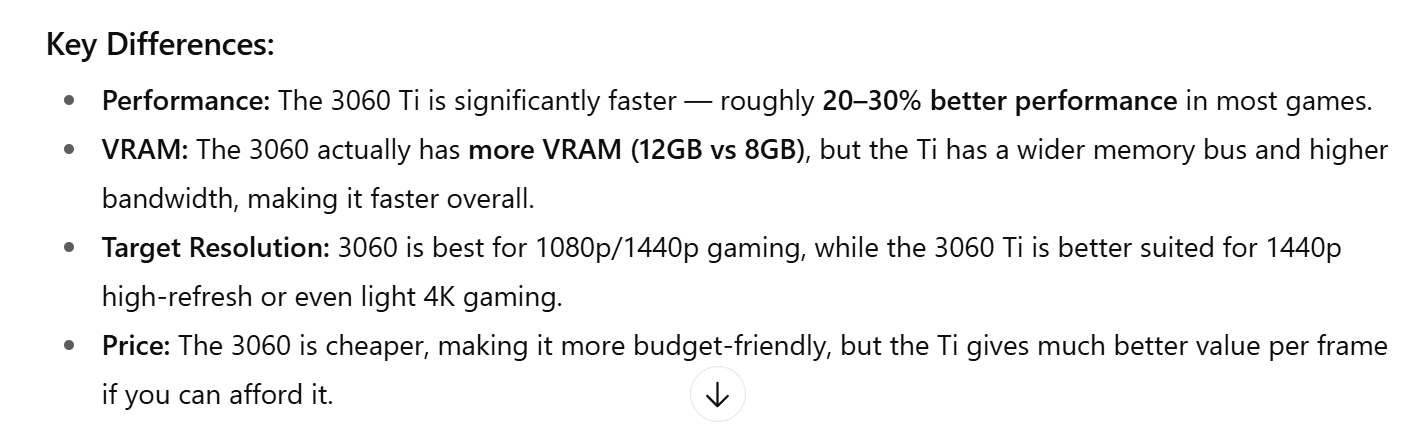 Your 3060TI(8GB) is certainly faster than my 3060(12GB) but right now I wouldnât swap my GPU for yours, but then I now have a 5060TI(16GB) in my other machine anyway.