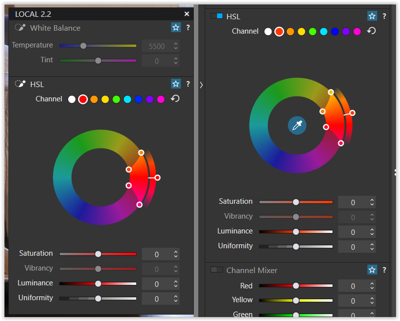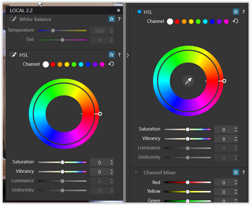 Yes, it is interesting how DXO had the code for the HSL tool and then bothered with the extra work needed to remove the eye-dropper tool from the local adjustments.