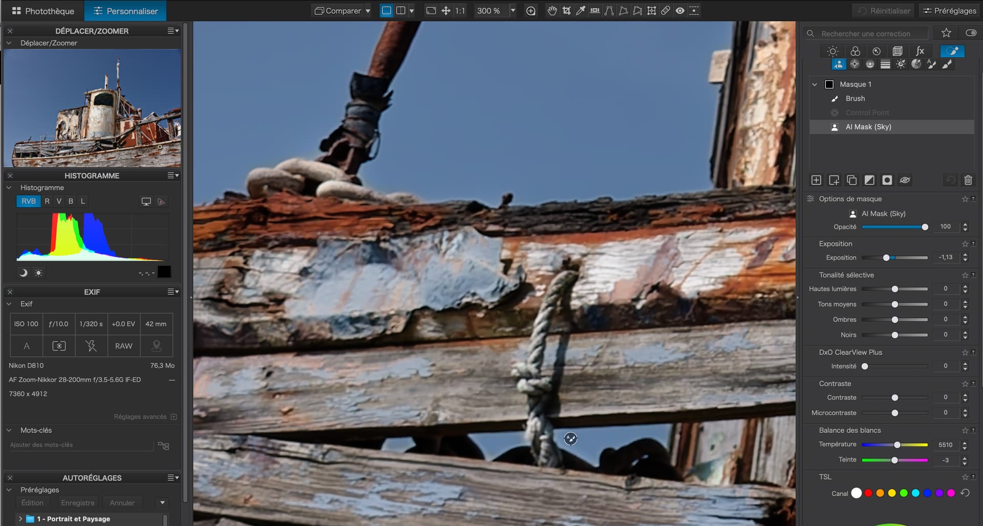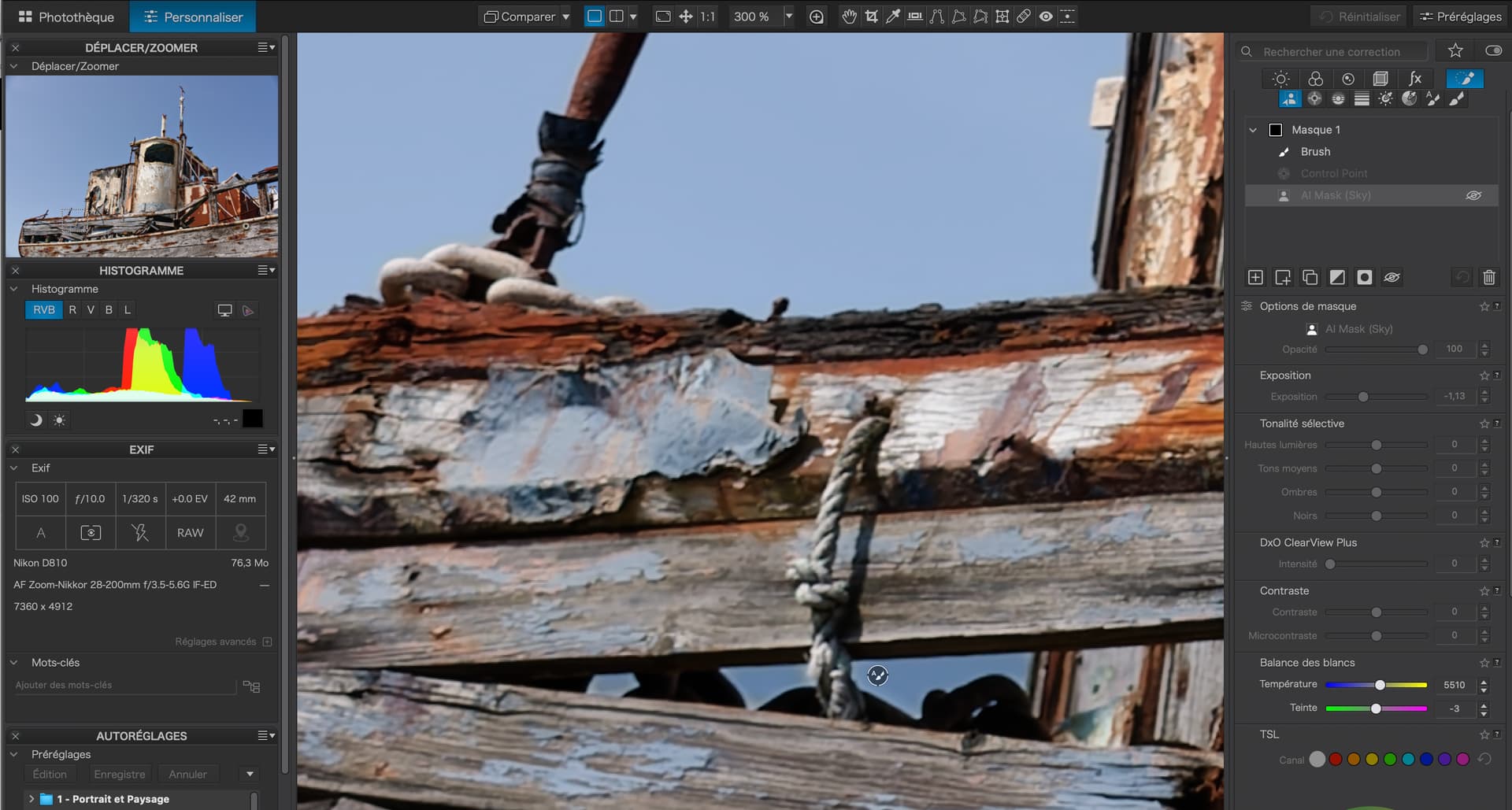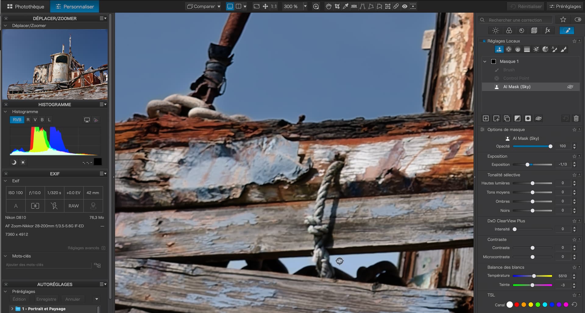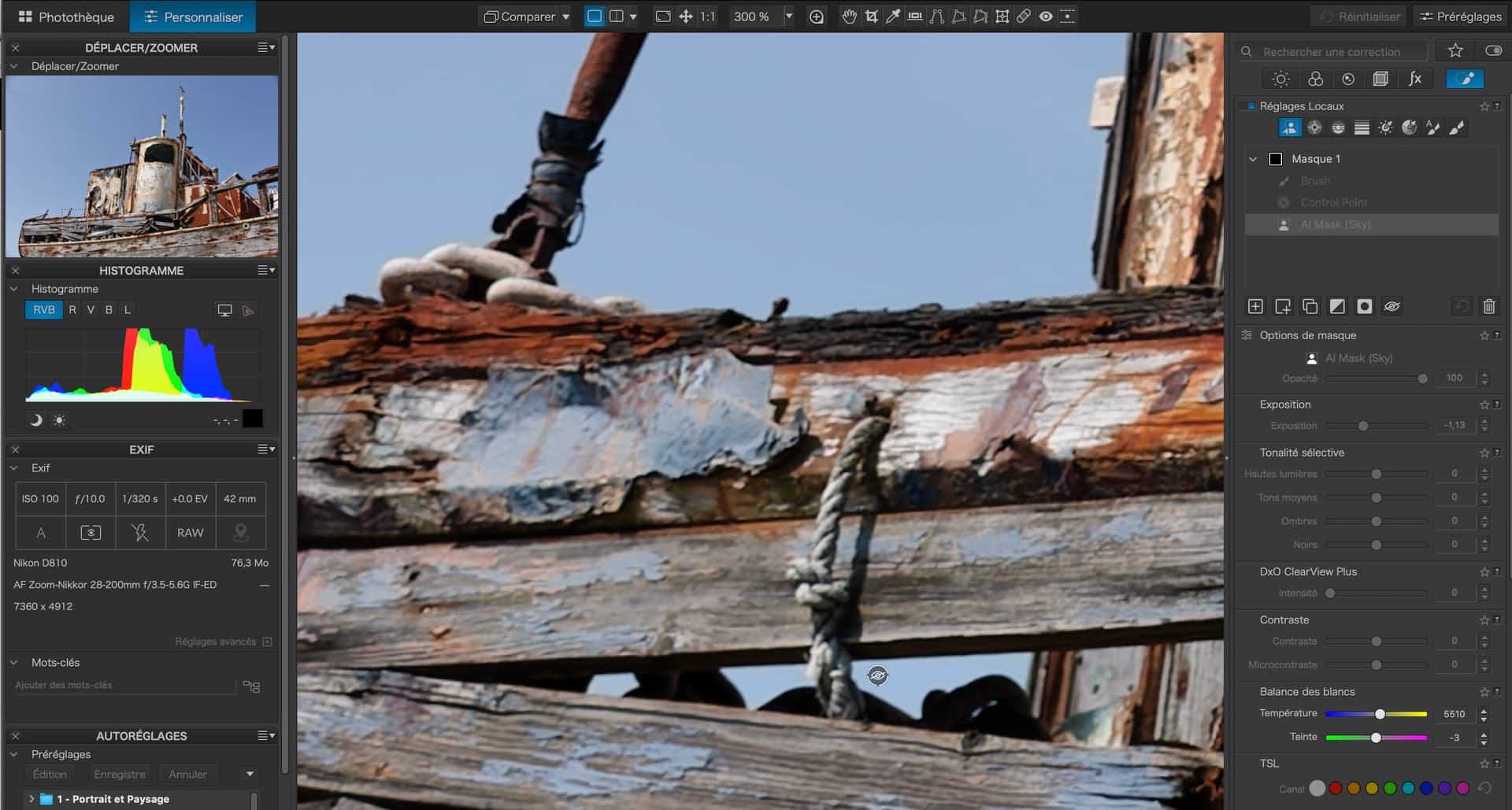 I had checked the mask properties, as with control points and control lines you can (also) adjust the chroma range to be selected, which then results in a different mask density and therefore affects the level of adjustment – all of which is different from how the predefined AI module selects the sky.