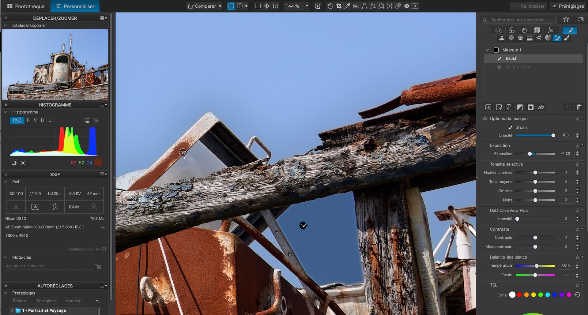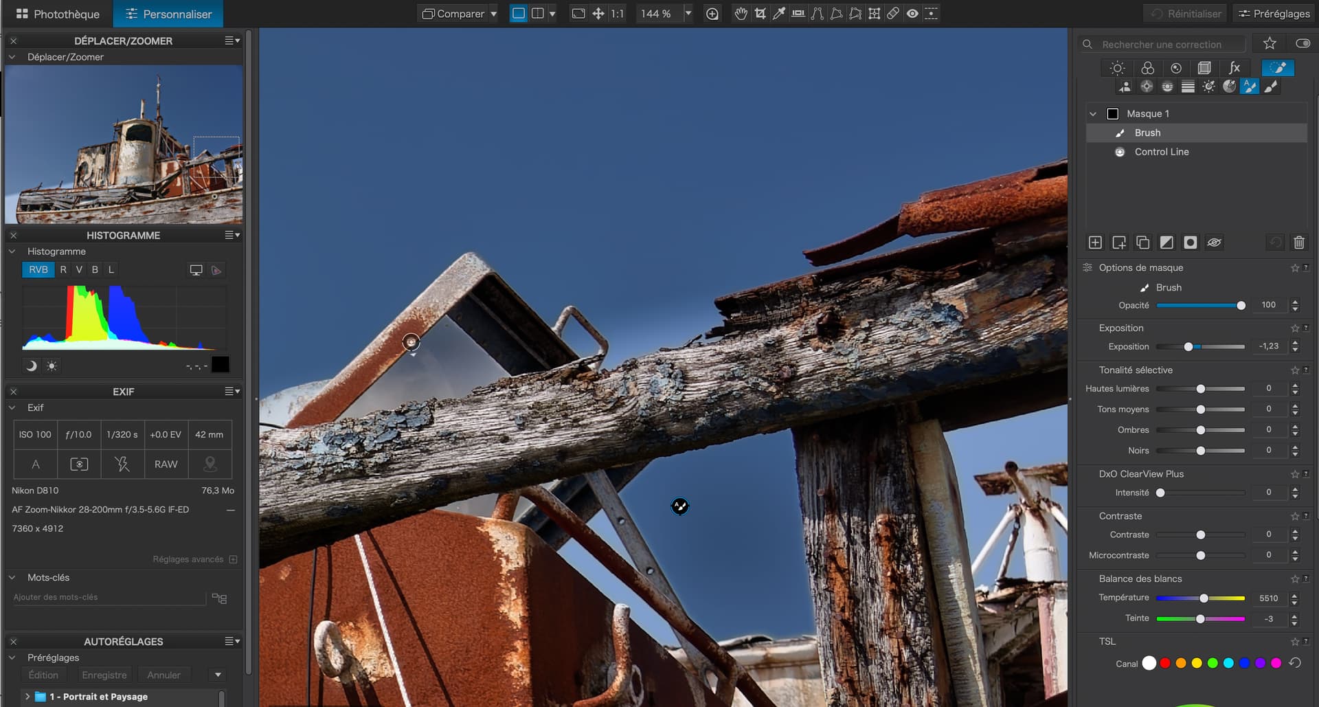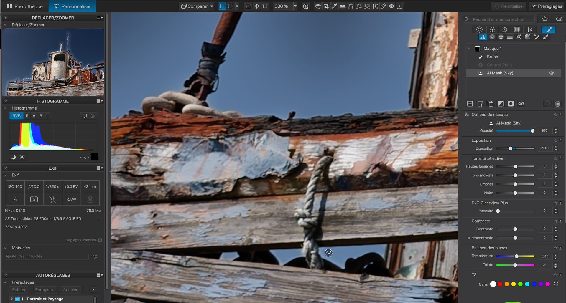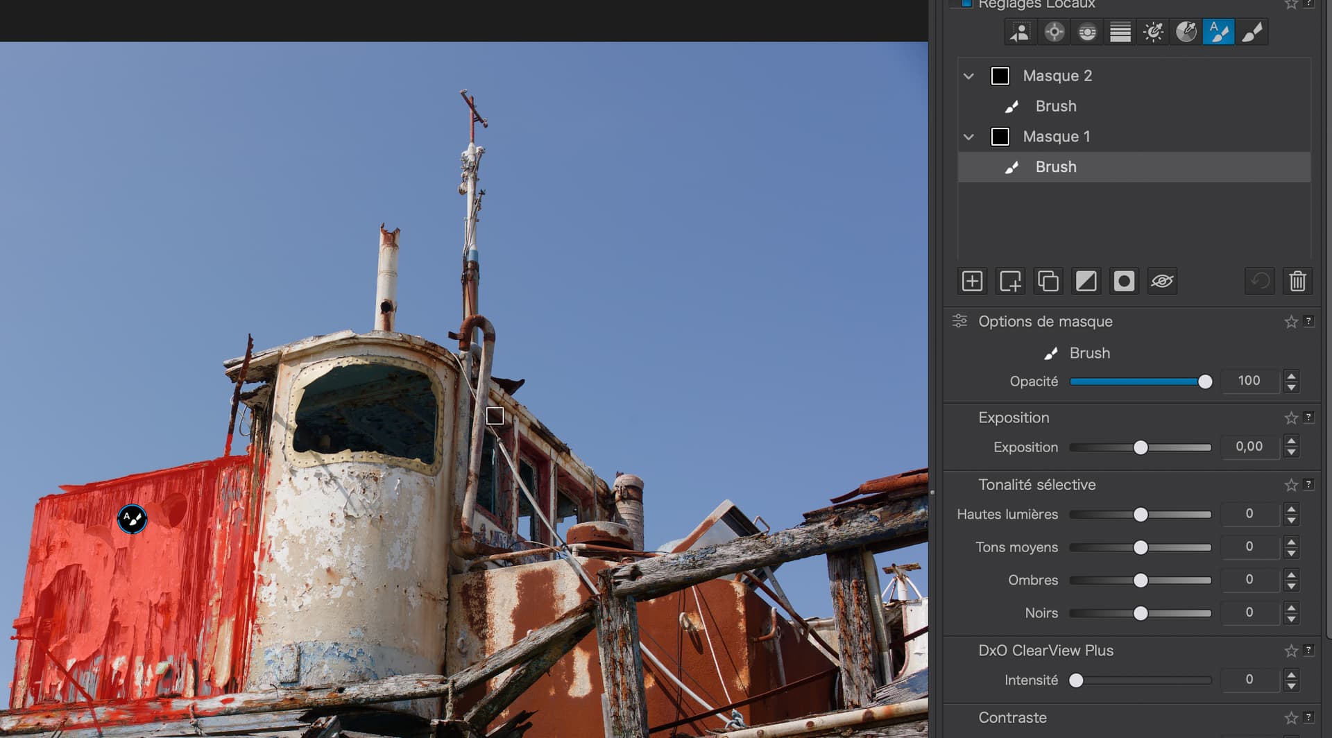 I had checked the mask properties, as with control points and control lines you can (also) adjust the chroma range to be selected, which then results in a different mask density and therefore affects the level of adjustment – all of which is different from how the predefined AI module selects the sky.